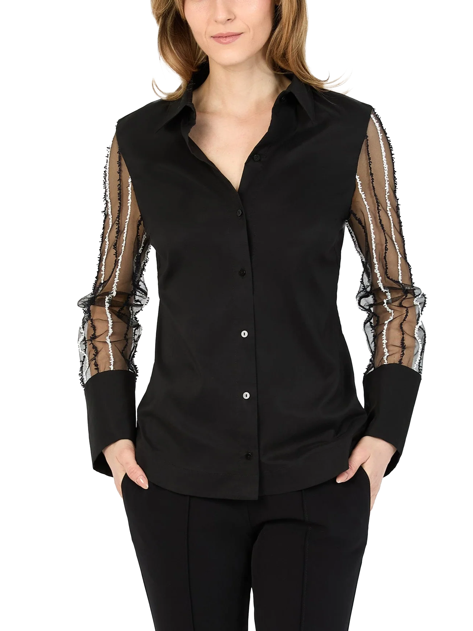 HILTON HOLLIS CERAMICA POPLIN WITH APPLIQUE TULLE SHIRT