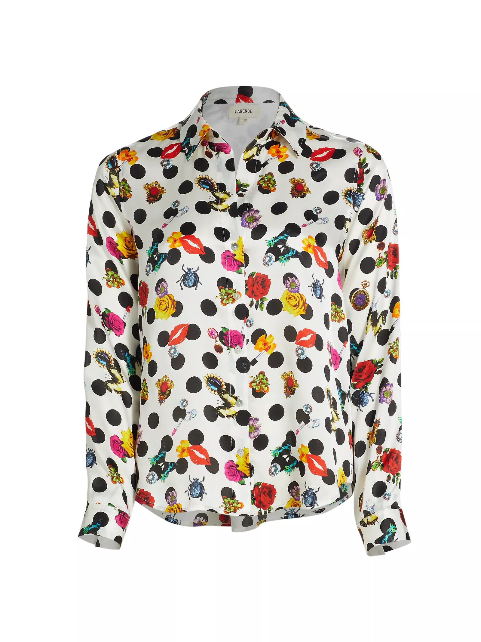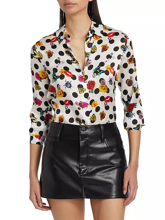 L'AGENCE Tyler Polka Dot Silk Button-Up Blouse