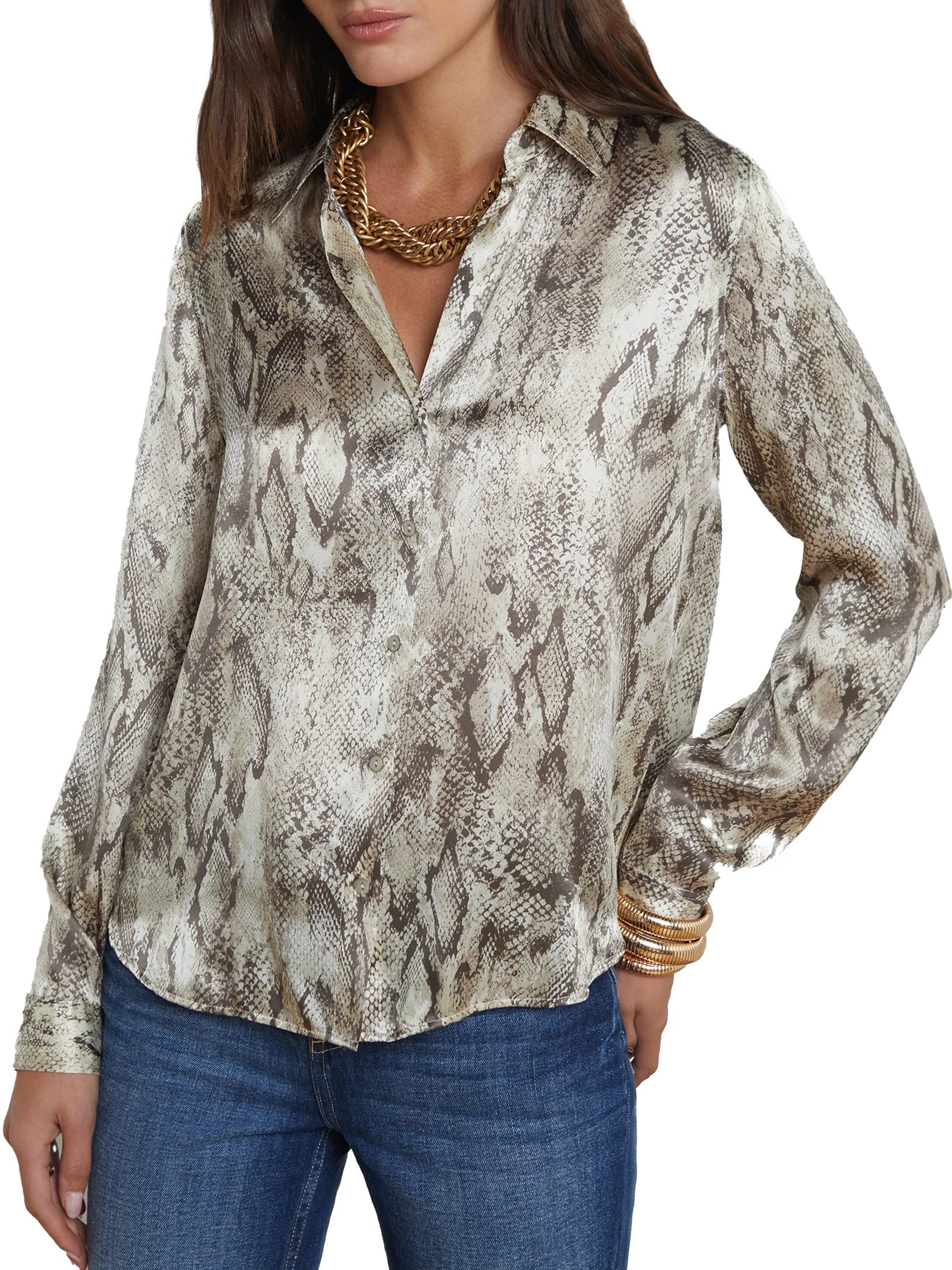 L'AGENCE Tyler Tan Multi Snake Silk Blouse