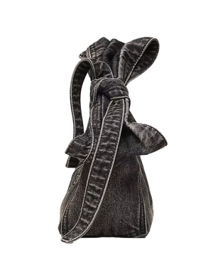 A bold twist on our Mini Sack, this style features an oversized bow for an everyday statement. Crafted in soft denim, it offers versatile styling with a top handle or adjustable leather crossbody strap. Inside, a D-ring and clip-in denim zip pouch keep cards, cash and keys organized, while raised stitched branding adds a signature finish.